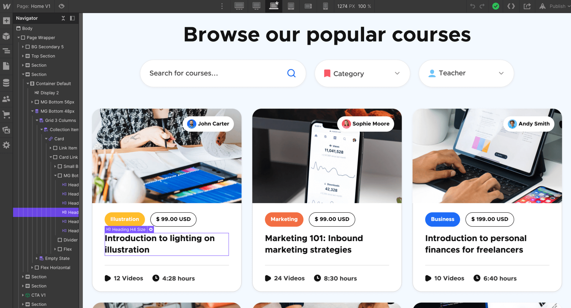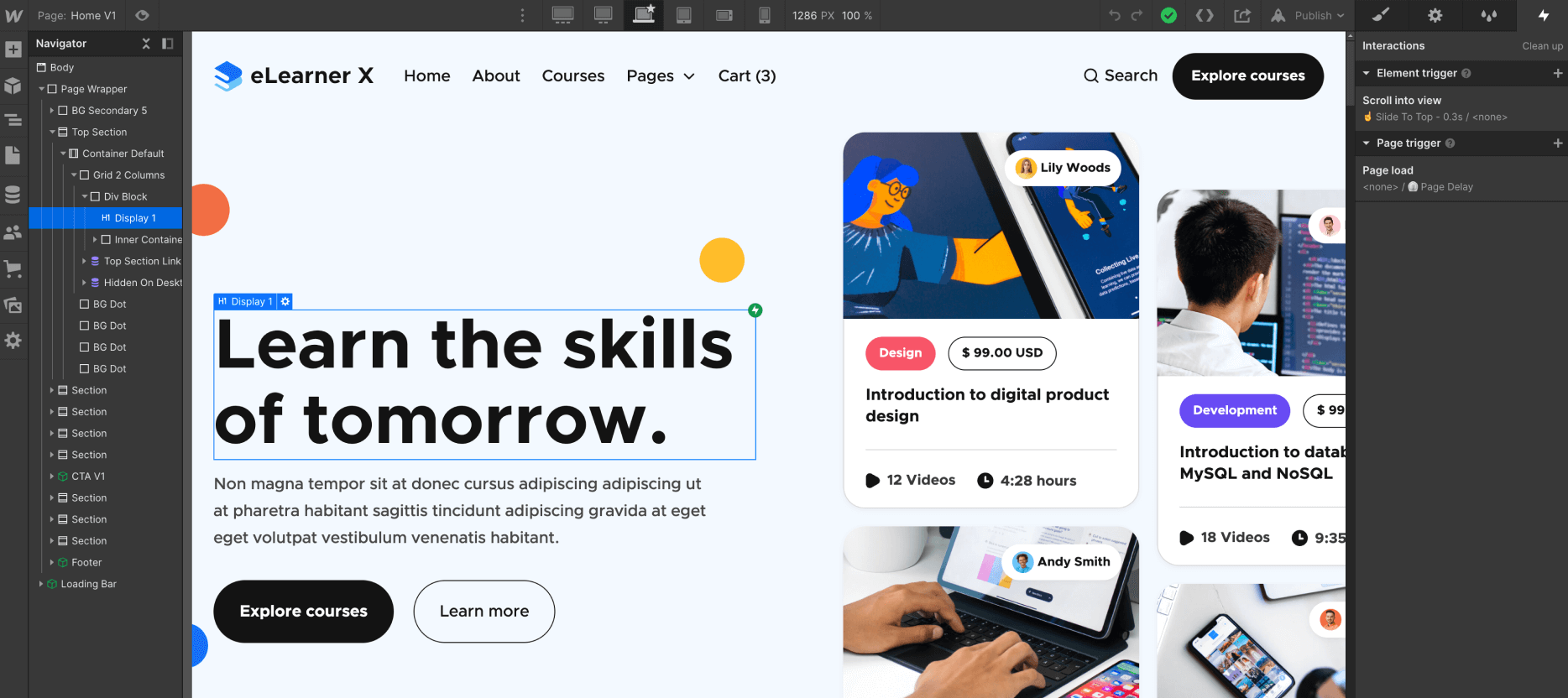 As you could see above, eLearner X was built on Webflow using the best practices to make it very easy for you to edit the template and customize it to your needs.