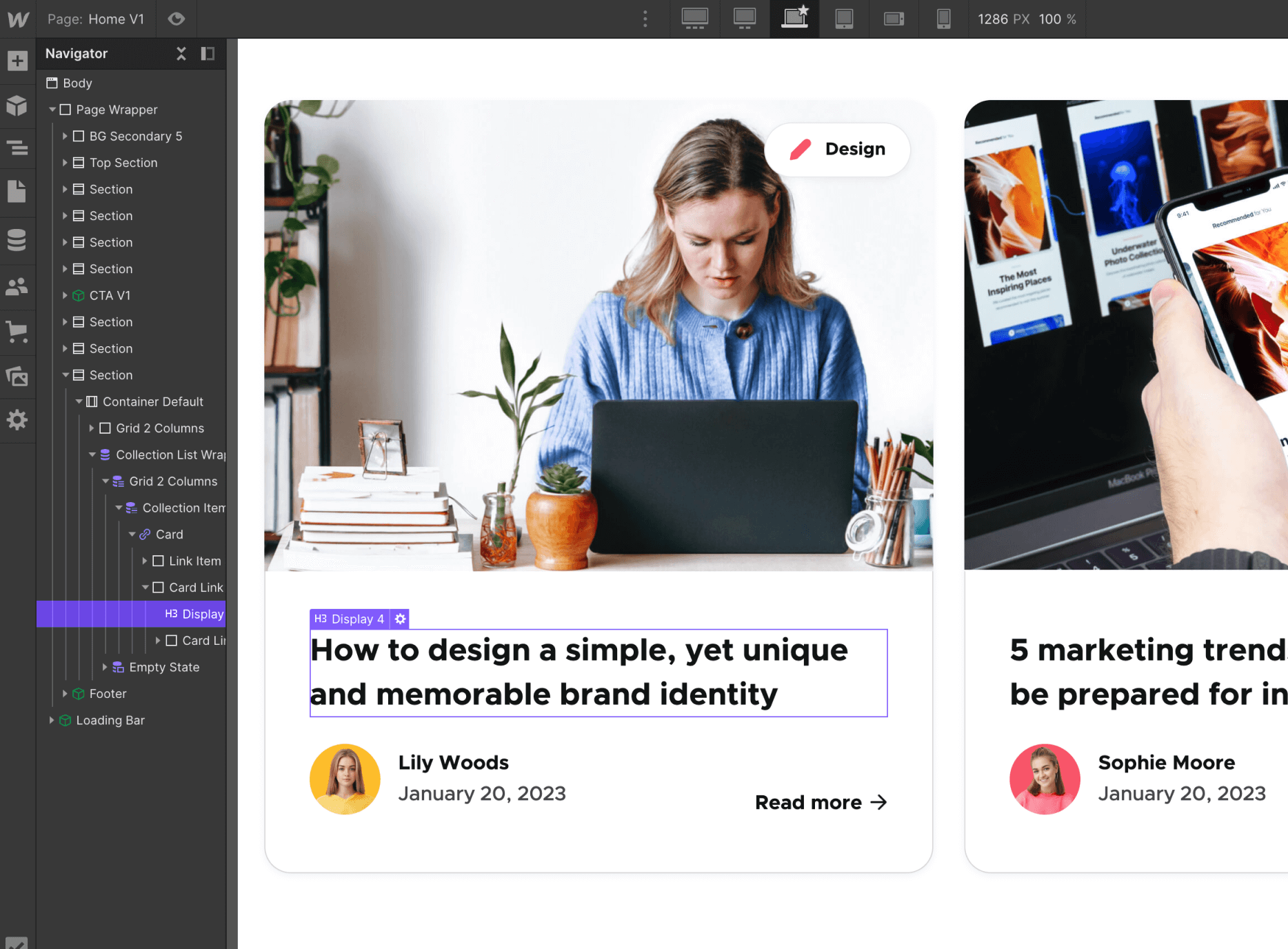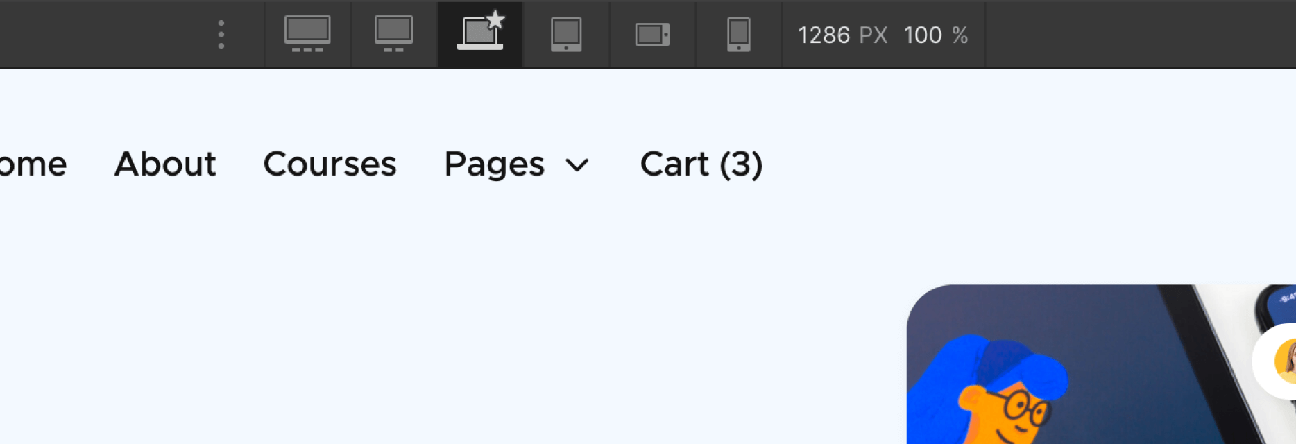 Everytime you make a change (for example, you create a new section design), it's a good practice to go to your Viewport top navigation and see how it looks on Tablet and Mobile.