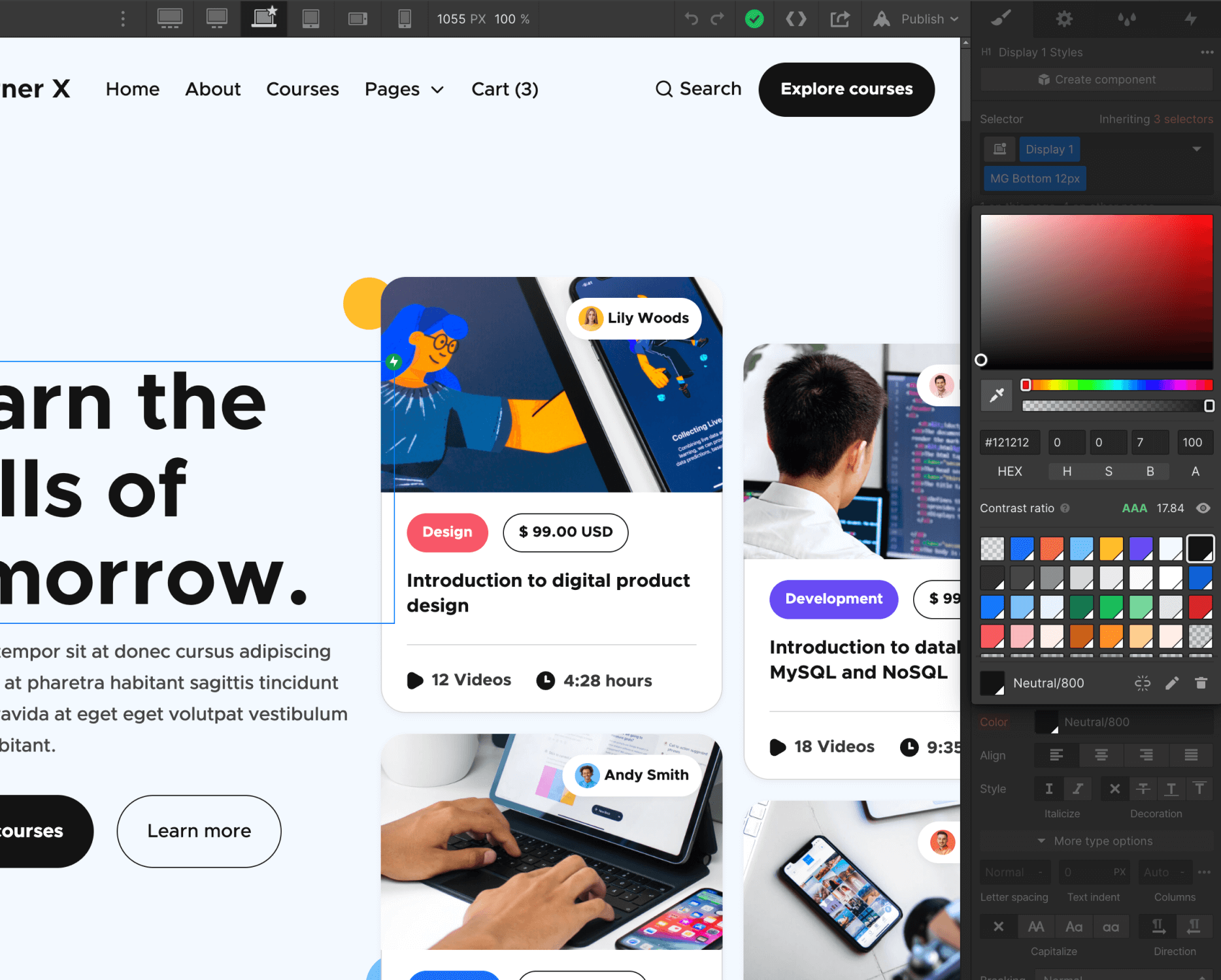 Thanks for purchasing the eLearner X template. In this brief guide we cover all the basics on how to edit basic elements (i.e. colors, fonts, CMS content, etc) from the eLearner X Webflow template.